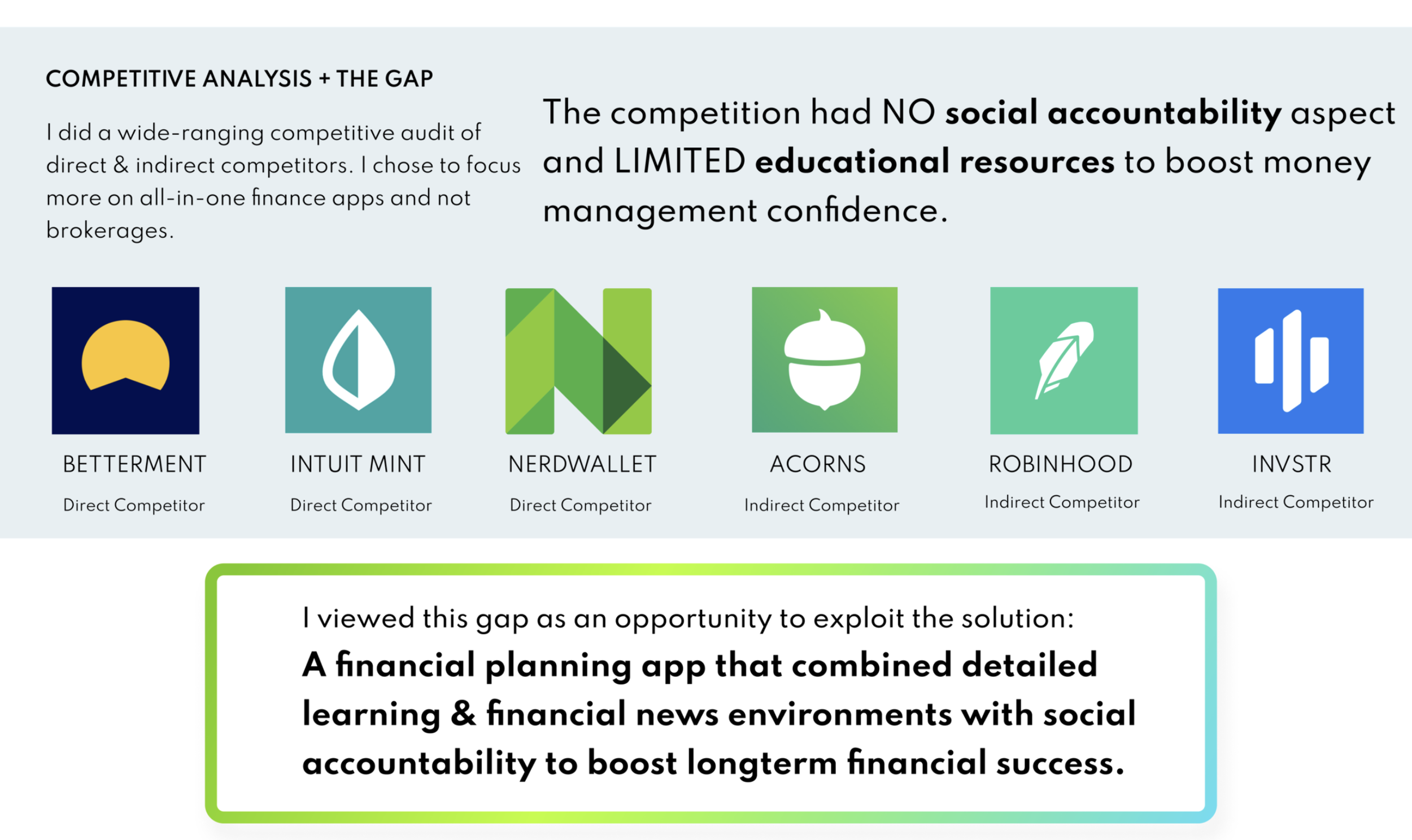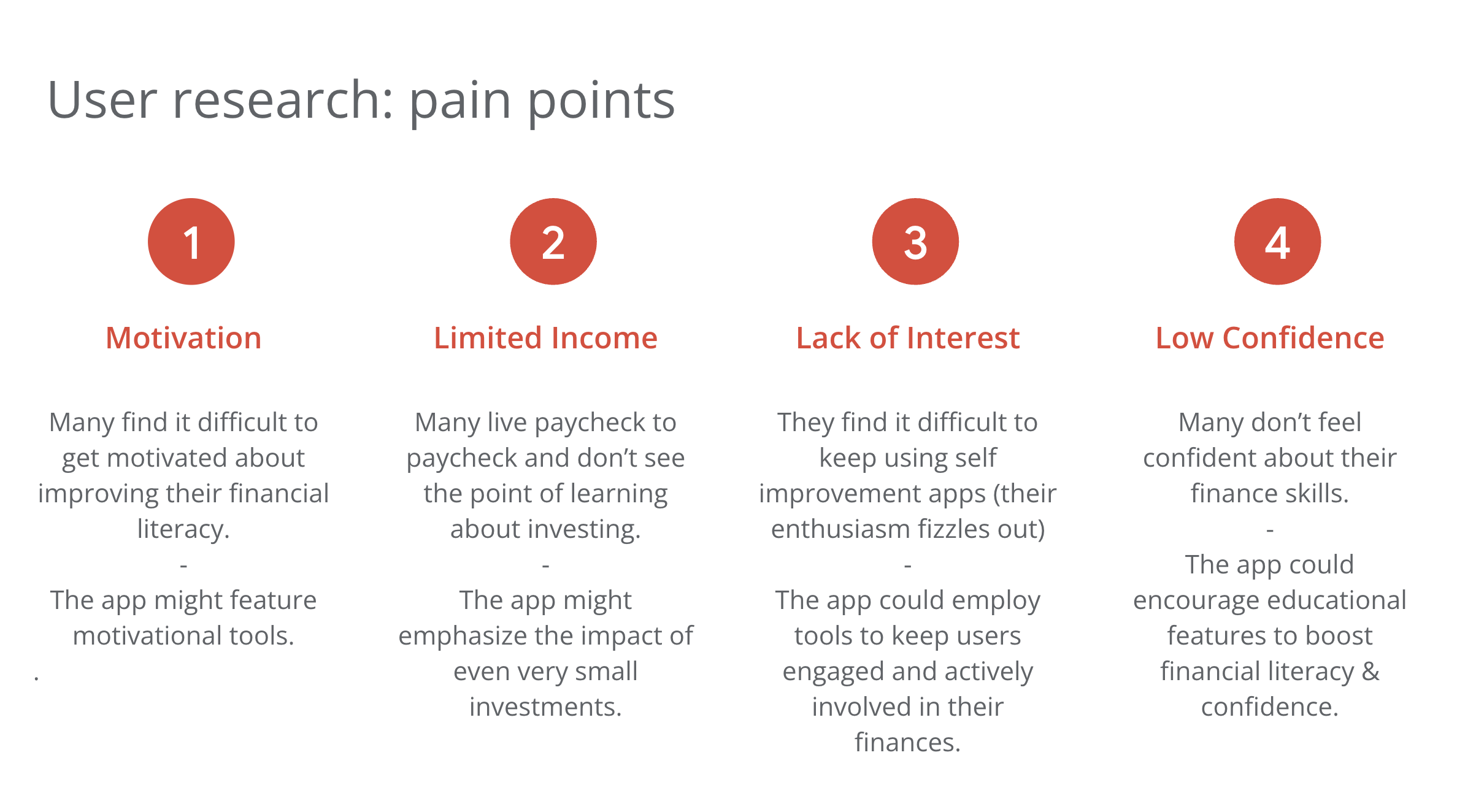 This early research also revealed that users struggle to stay motivated and stick to their goals. While each of the participants were enthusiastic about being more serious about their finances, some questioned whether they could stay committed to investing for the long term.